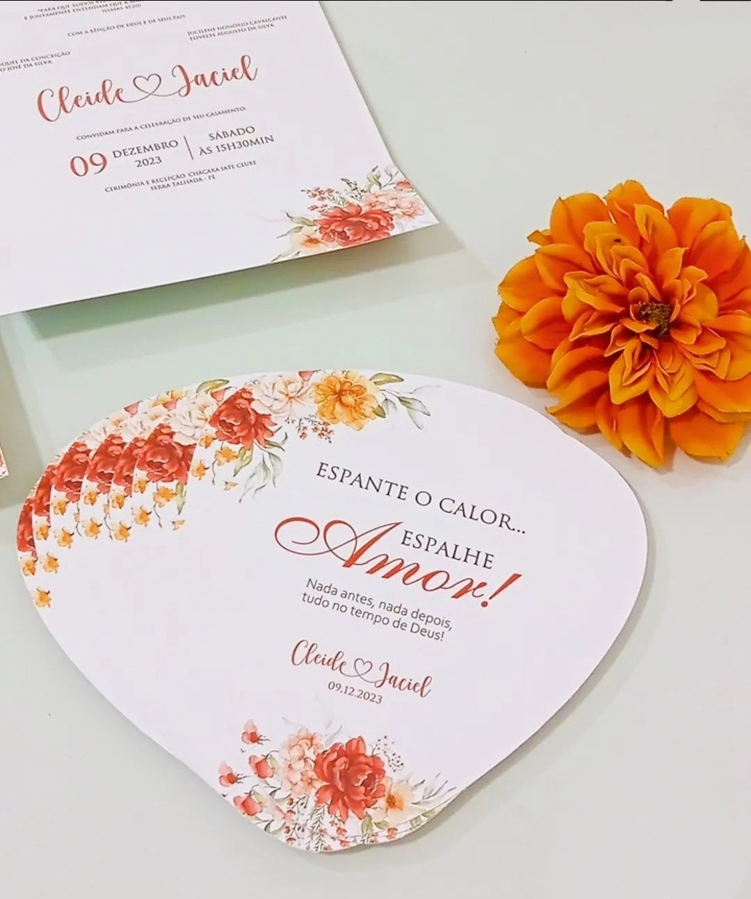 Os leques personalizados são mais do que apenas uma maneira de se refrescar em um dia quente. Eles adicionam um toque de elegância e estilo à sua cerimônia, enquanto proporcionam conforto aos seus convidados. Com designs personalizados, esses leques se tornam lembranças preciosas do seu grande dia. Deixe seus amigos e familiares desfrutarem do seu casamento com estilo e frescor, tornando cada momento ainda mais memorável!
